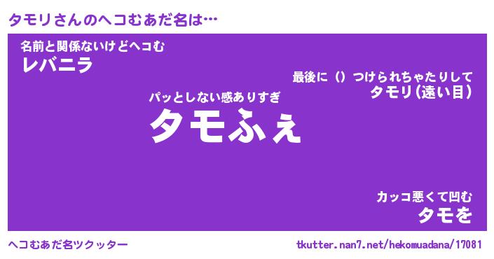 | ポケモン風あだ名 | 『タモチュウ』『タモリダネ』 |