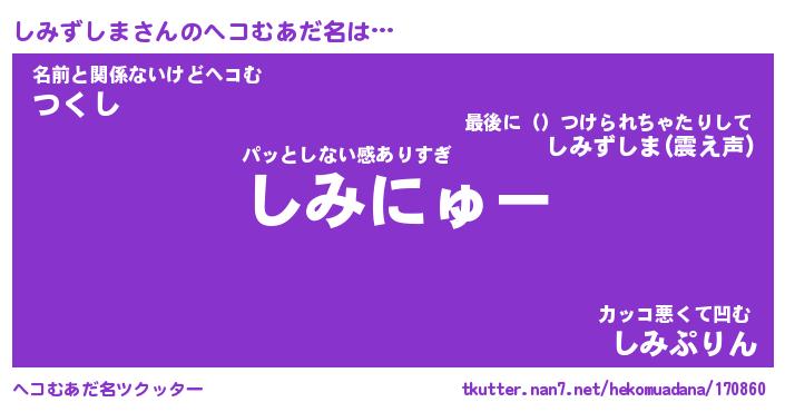 | ポケモン風あだ名 | 『シミチュウ』『シミズダネ』 |