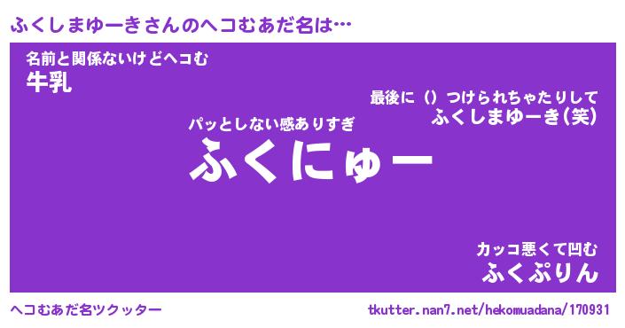 | 意味不明あだ名 | 『ペロリンふくしまゆーき』 |
