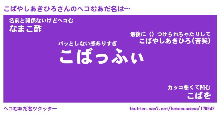 | 肩書あだ名 | 『こばやしあきひろ御曹司』 |