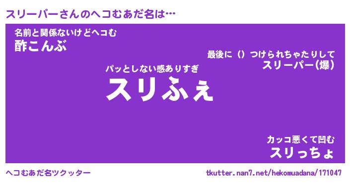 | ヒーロー風カッコイイあだ名 | 『スーパースリーパー』『暗黒騎士スリ』 |