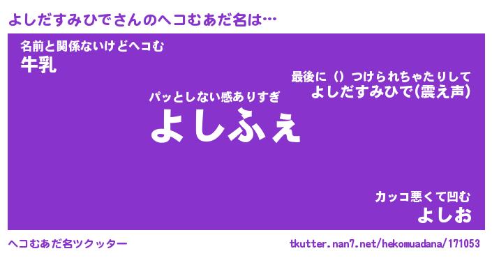 | ヒーロー風カッコイイあだ名 | 『スーパーヨシダスミヒデ』 |