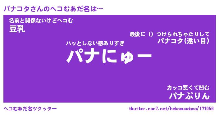 | 男性向けラノベタイトル風あだ名 | 『パナコタの憂鬱』 |