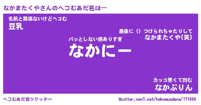 | ヒーロー風カッコイイあだ名 | 『スーパーナカマタクヤ』『天弓騎士ナカ』 |