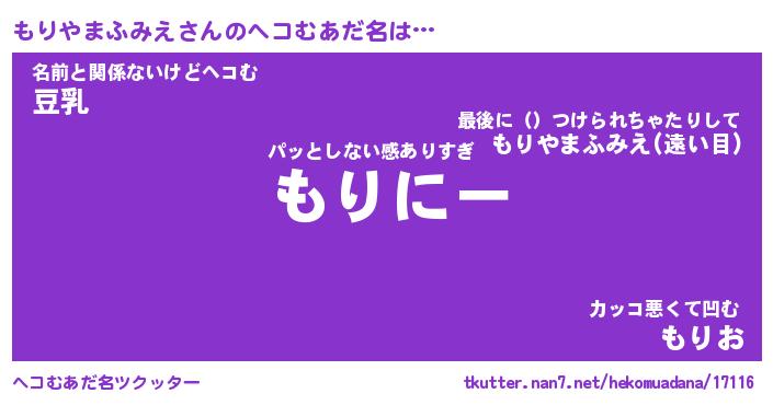 | 意味不明あだ名 | 『ペロリンもりやまふみえ』 |