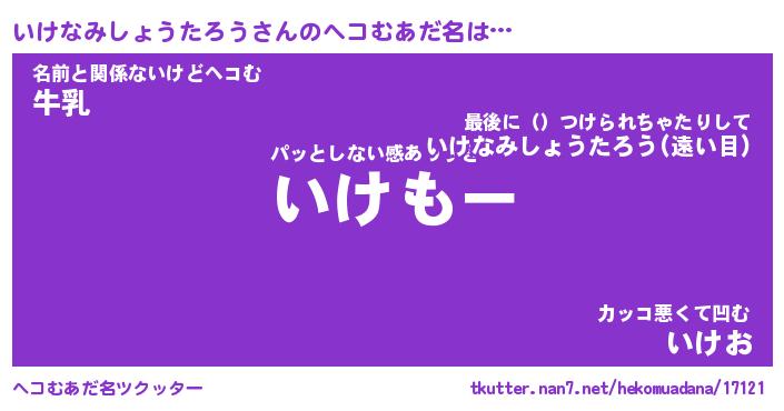 | 男性向けラノベタイトル風あだ名 | 『いけなみしょうたろうの憂鬱』 |