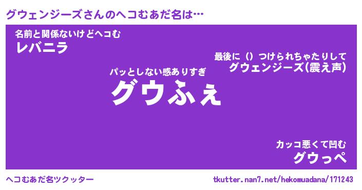 | 男性向けラノベタイトル風あだ名 | 『グウェンジーズの憂鬱』 |
