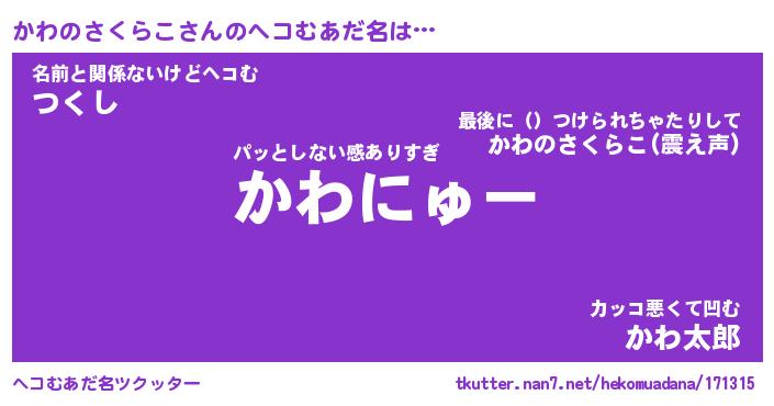 | 意味不明あだ名 | 『ペロリンかわのさくらこ』 |