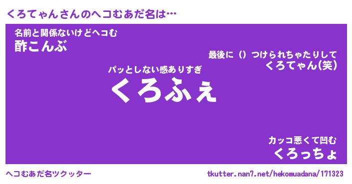 | 意味不明あだ名 | 『ペロリンくろてゃん』 |