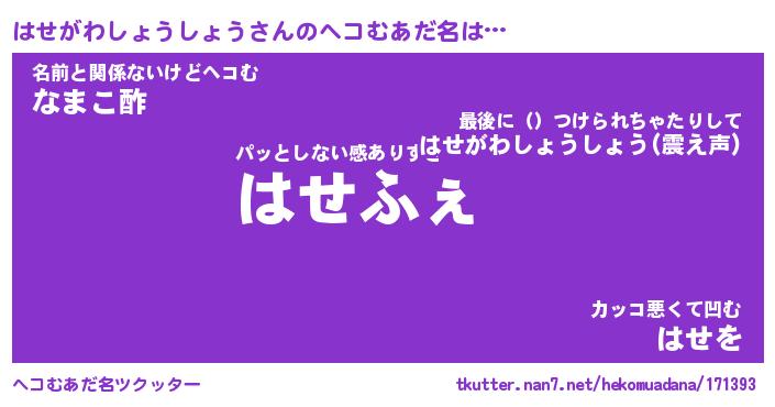 | ポケモン風あだ名 | 『ハセチュウ』『ハセガダネ』 |