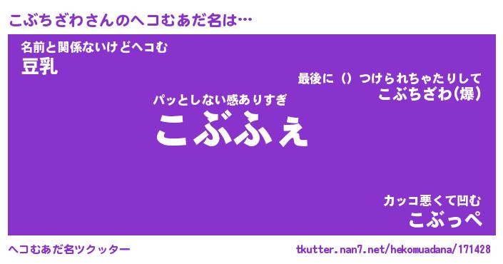 | 女子向けラノベタイトル風あだ名 | 『(仮)こぶちざわのやんごとなき事情』 |