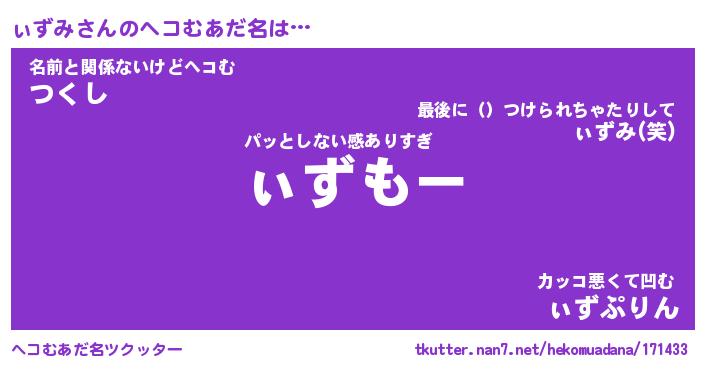 | ヒーロー風カッコイイあだ名 | 『スーパーィズミ』『ウルトラぃずみマン』 |