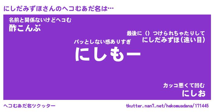 | ポケモン風あだ名 | 『ニシチュウ』『ニシダダネ』 |