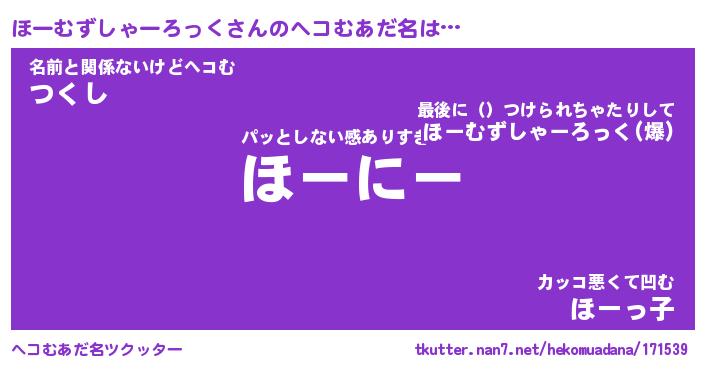 | 意味不明あだ名 | 『ペロリンほーむずしゃーろっく』 |