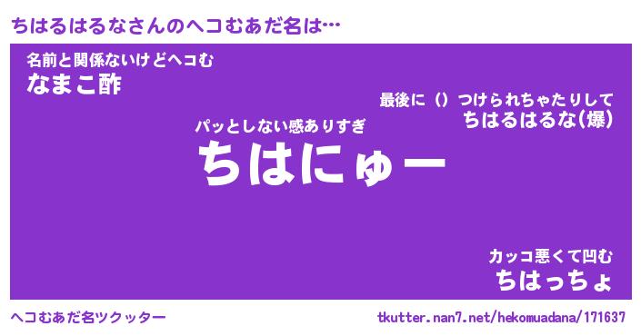 | ヒーロー風カッコイイあだ名 | 『スーパーチハルハルナ』『天弓騎士チハ』 |