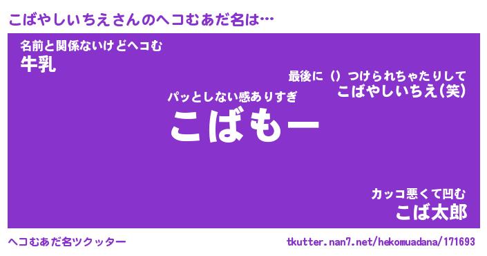 | 2回繰り返すあだ名 | 『こばこば』『ここばば』『にたにた』 |