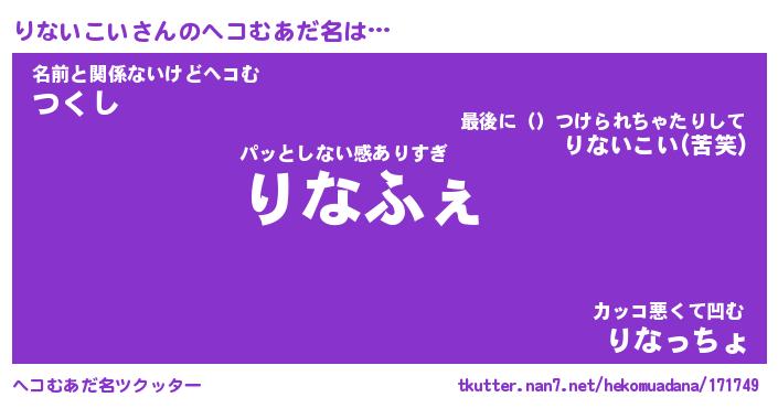 | ファンタジー風あだ名 | 『リナフェル』『エターナルリナイコイー』 |