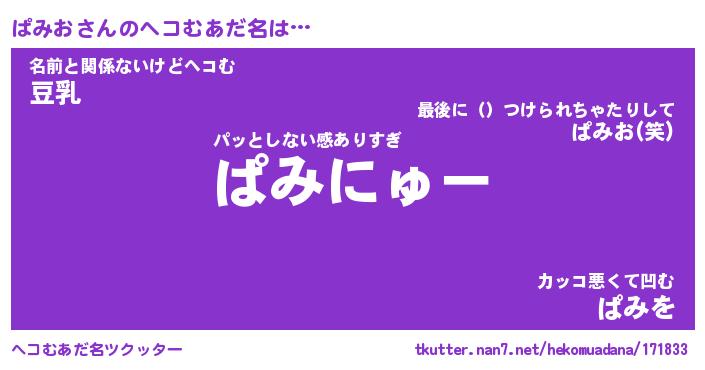 | ポケモン風あだ名 | 『パミチュウ』『パミオダネ』 |