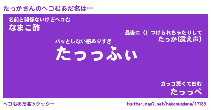 | ファンタジー風あだ名 | 『タッフェル』『エターナルタッカー』 |