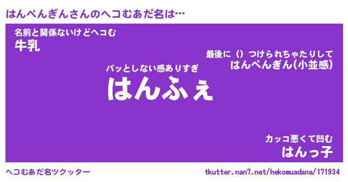 | ポケモン風あだ名 | 『ハンチュウ』『ハンペダネ』 |
