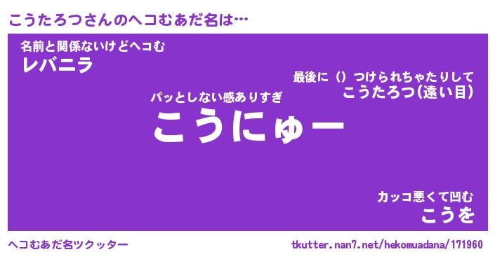 | 意味不明あだ名 | 『ペロリンこうたろつ』 |