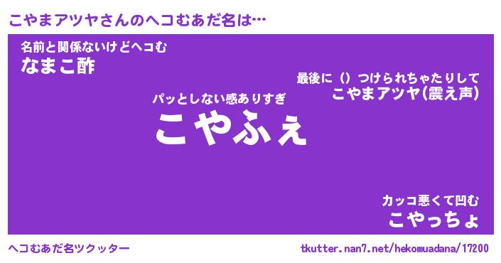 | 男性向けラノベタイトル風あだ名 | 『こやまアツヤの憂鬱』 |