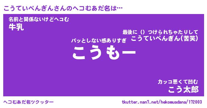 | 2回繰り返すあだ名 | 『こうこう』『ここうう』『へらへら』 |