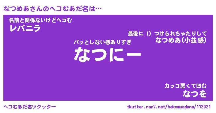 | 意味不明あだ名 | 『ペロリンなつめあ』『永久保存なつめあ』 |