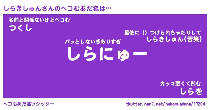 | 意味不明あだ名 | 『ペロリンしらきしゅん』 |