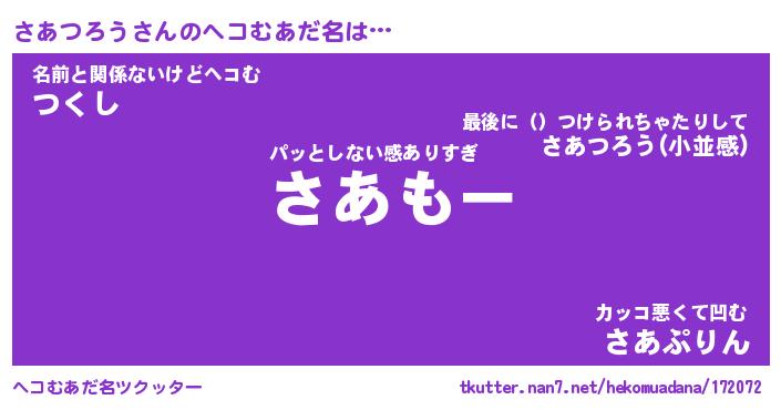 | 男性向けラノベタイトル風あだ名 | 『さあつろうの憂鬱』 |