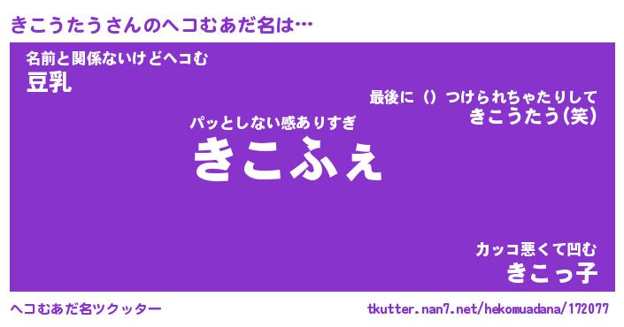 | 男性向けラノベタイトル風あだ名 | 『きこうたうの憂鬱』 |