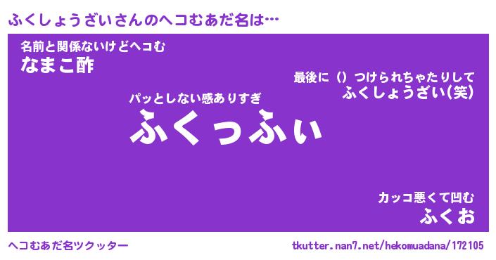 | ポケモン風あだ名 | 『フクチュウ』『フクシダネ』 |
