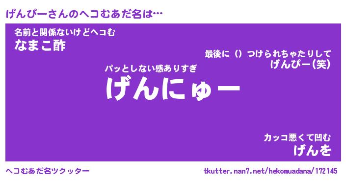 | ポケモン風あだ名 | 『ゲンチュウ』『ゲンピダネ』 |
