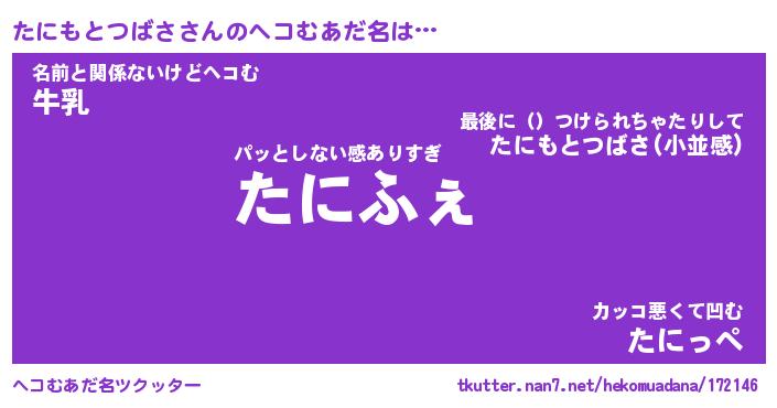 | ポケモン風あだ名 | 『タニチュウ』『タニモダネ』 |