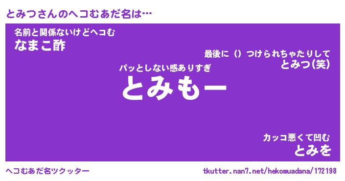 | 男性向けラノベタイトル風あだ名 | 『とみつの憂鬱』 |