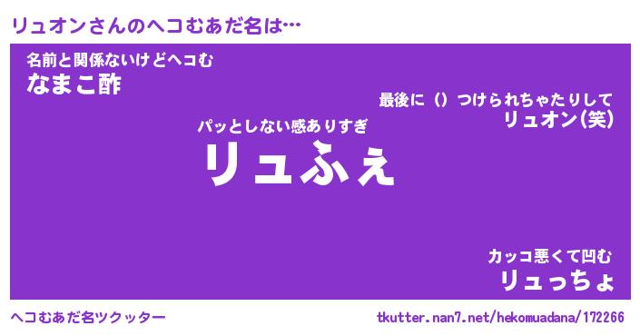 | 意味不明あだ名 | 『ペロリンリュオン』『永久保存リュオン』 |