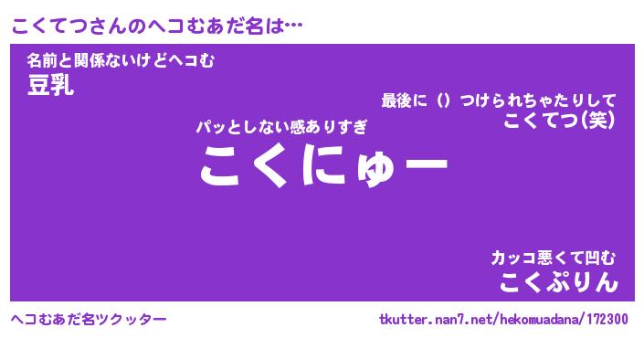 | 意味不明あだ名 | 『ペロリンこくてつ』『永久保存こくてつ』 |
