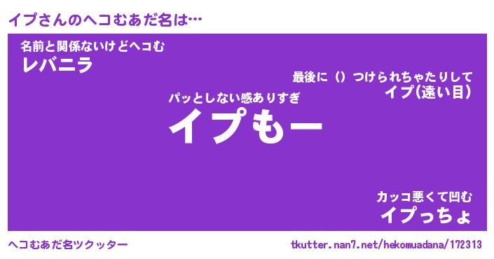 | ポケモン風あだ名 | 『イプチュウ』『イプダネ』『ヒイプ』 |