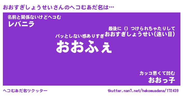 | 2回繰り返すあだ名 | 『おおおお』『おおおお』『うずうず』 |