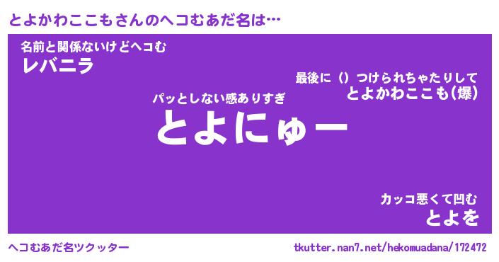 | 胡散臭い通販商品みたいなあだ名 | 『億万長者になれる水晶球…その名も「とよかわここも」』 |