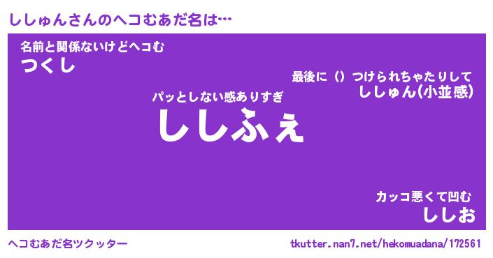 | 意味不明あだ名 | 『ペロリンししゅん』『永久保存ししゅん』 |