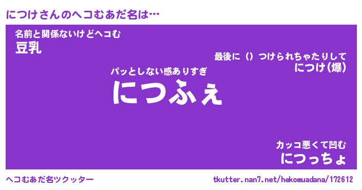 | ポケモン風あだ名 | 『ニツチュウ』『ニツケダネ』 |