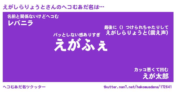 | 意味不明あだ名 | 『ペロリンえがしらりょうと』 |