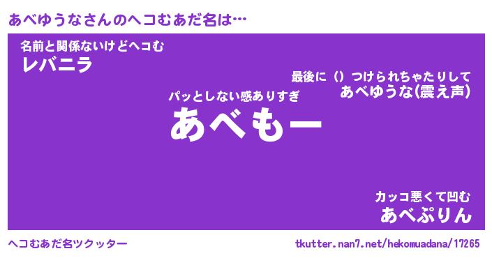 | 意味不明あだ名 | 『ペロリンあべゆうな』 |