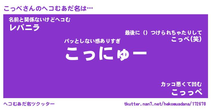 | 男性向けラノベタイトル風あだ名 | 『こっべの憂鬱』 |