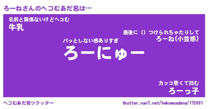 | 女子向けラノベタイトル風あだ名 | 『ろーね姫と円卓の騎士』『ろーね恋絵巻』 |