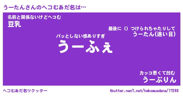 | 意味不明あだ名 | 『ペロリンうーたん』『永久保存うーたん』 |