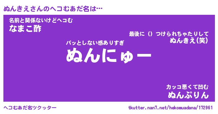 | 2回繰り返すあだ名 | 『ぬんぬん』『ぬぬんん』『ぬぷぬぷ』 |