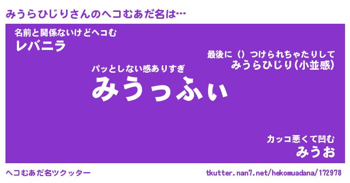 | ヒーロー風カッコイイあだ名 | 『スーパーミウラヒジリ』『幻影騎士ミウ』 |