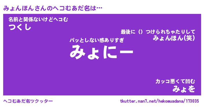 | 2回繰り返すあだ名 | 『みょみょ』『みみょょ』『あんあん』 |